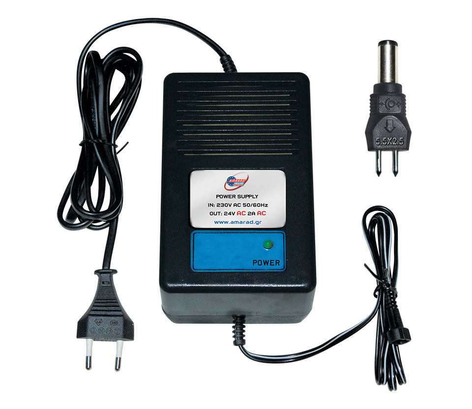Τάση εισόδου: 230V AC 50/60HzΤάση εξόδου: 24V ACΡεύμα εξόδου: 2A max