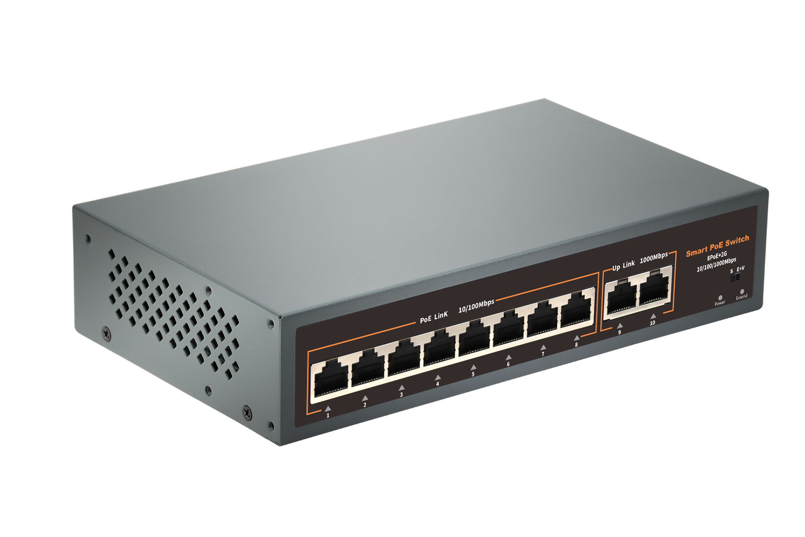 Συσκευή τροφοδοσίας PoE switch 8 θυρών 10/100 mbpsΙσχύς:120WNetwork port: 8*10/100mbps POE port,2*100/1000mbps UP Link portΤροφοδοσία: 100-240V AC 50/60HzΔιαστάσεις:200x120x40mm